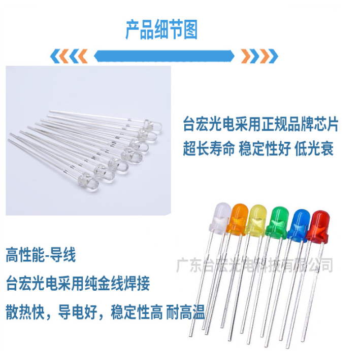 - 应用:台宏3mm发光二极管因其体积小巧,常用于手机、电脑、数码相机等产品的指示灯和背光。