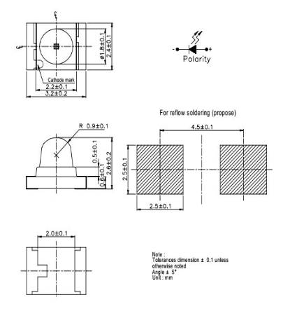 1、3224led灯珠,它是一款贴片式(SMD)封装类型, 尺寸:3.2mm×2.4mm,高度:0.6mm(典型值)引脚间距:1.25mm(标准间距)。