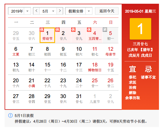 广东台宏光电2019年五一放假安排