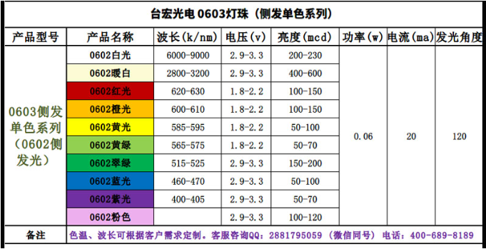 以上就是系列的0603灯珠参数、型号、尺寸和电流、角度参度,具体的每款灯珠规格书或咨询在线客服。