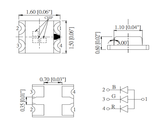 三、0603灯珠灯珠尺寸:(全彩 双色 三色系列尺寸图)