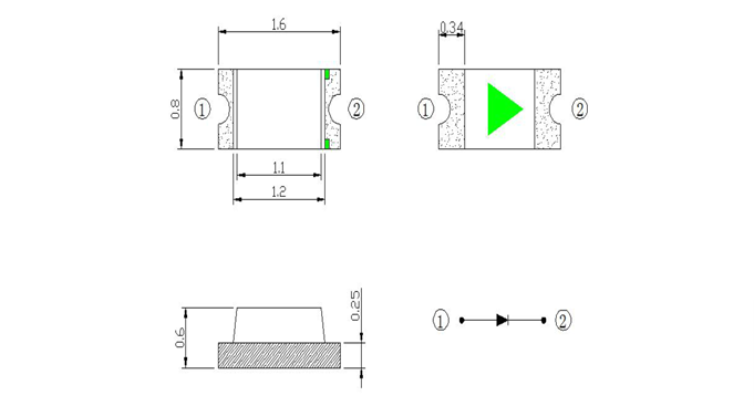 一、0603灯珠尺寸:(单色尺寸图)