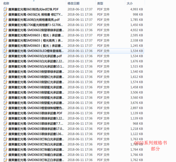 0603灯珠规格书(系列)