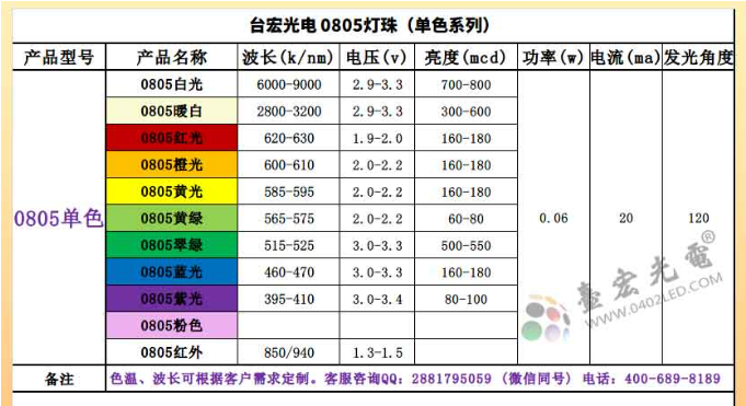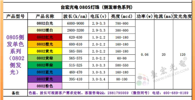 以上就是台宏光电系列的0805灯珠参数、型号、尺寸和电流、角度参度,具体需哪款灯珠规格书和免费灯珠样品测试请咨询在线客服。售前客服咨询QQ: 2881795059 (微信同号)