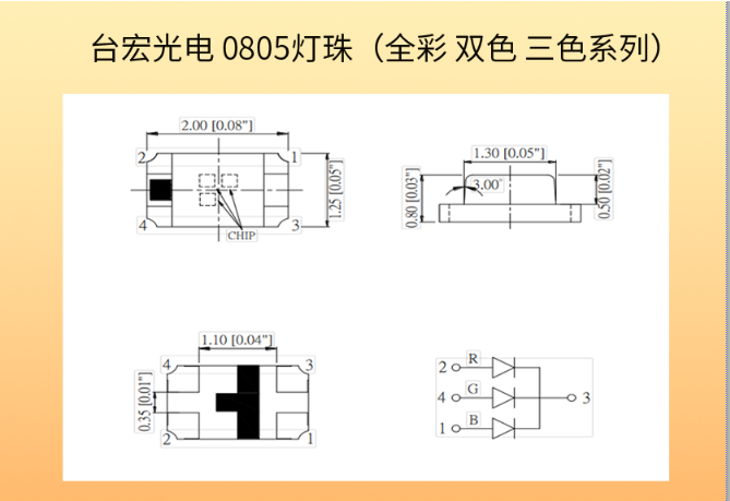 0805灯珠规格书包括0805灯珠红光、黄光、蓝光、白光、紫光、单色、双色、三色全彩系列等,共计几十种规格书。