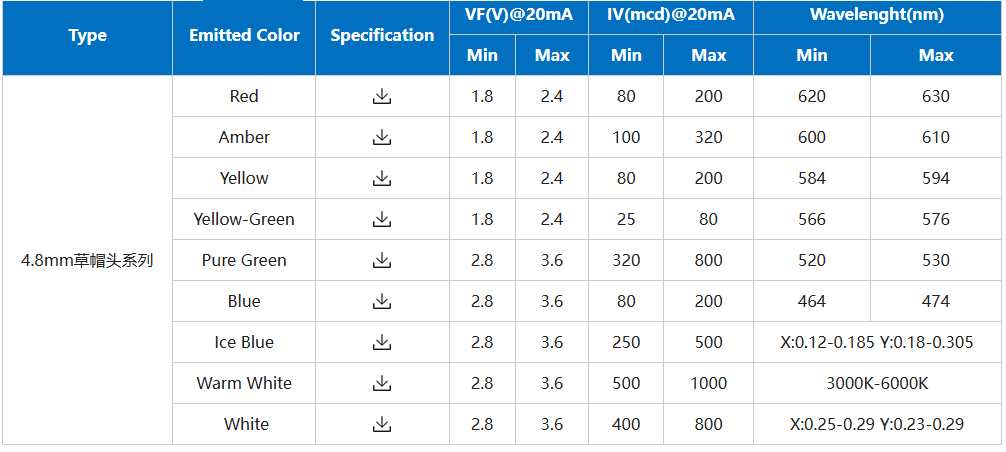 5mm的草帽led灯珠参数