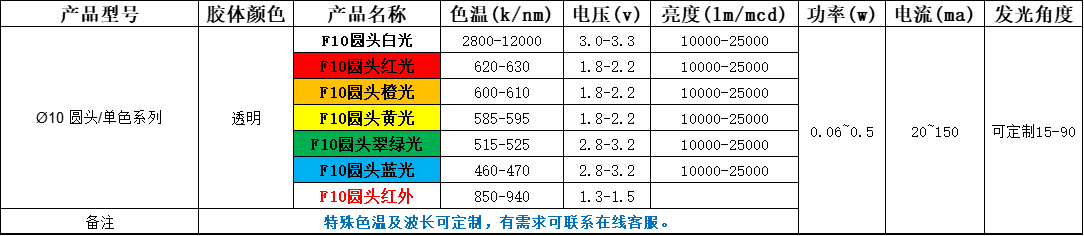 • 波长范围:红光620-630nm,绿光515-520nm,蓝光465-470nm,白光(无特定波长,由多种颜色混合而成)