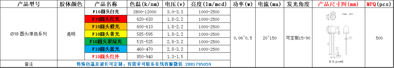 led灯珠10mm,高亮10mm白光led灯珠参数。