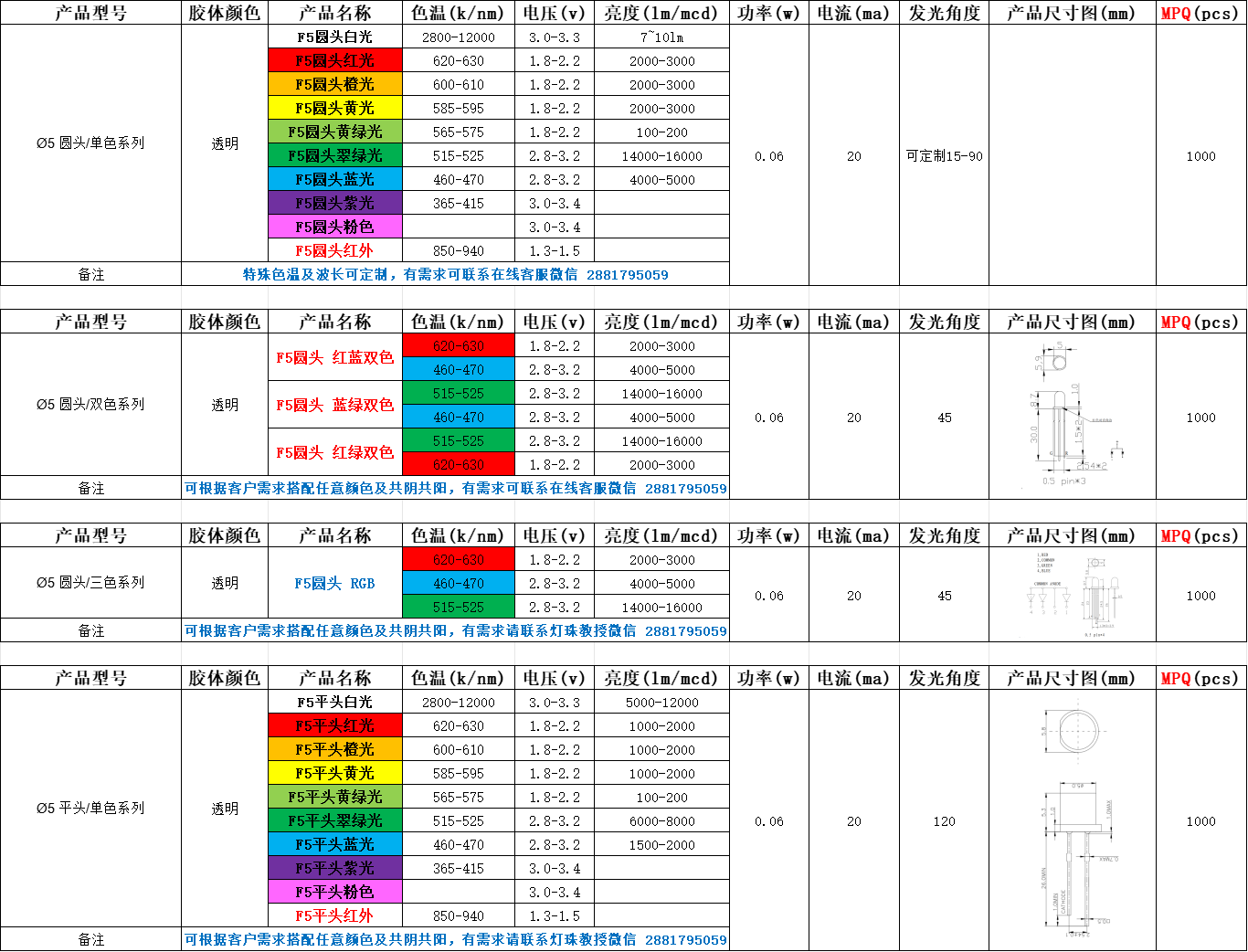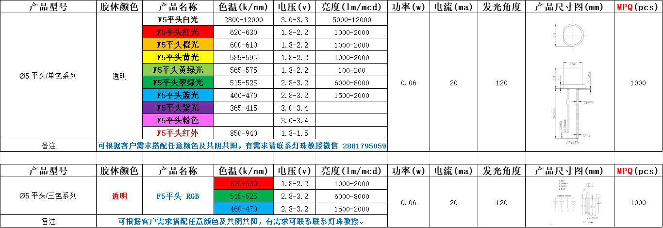 5mm发光二极管参数,5mm发光二极管电流是多少?
