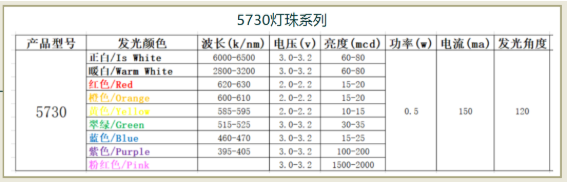 5730贴片led灯珠型号对照表