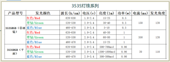 3535贴片led灯珠型号对照表