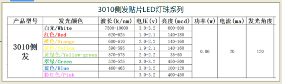 比如:像020侧发光灯珠,因为功率较小,现在慢慢地被3014侧发光系列取代,是因为3014的侧发功率可以做0.1W,0.2W。