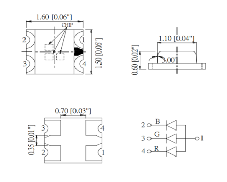 三、0603灯珠尺寸:(全彩 双色 三色系列尺寸图)0603灯珠_0603灯珠尺寸_0603贴片led参数,单色双色三色全彩规格书一起给你0603灯珠灯珠尺寸:(全彩 双色 三色系列尺寸图)