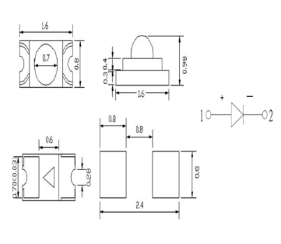 四、0603灯珠尺寸:(凸头单色系列尺寸图)0603灯珠_0603灯珠尺寸_0603贴片led参数,单色双色三色全彩规格书一起给你0603灯珠灯珠尺寸:(凸头单色系列尺寸图)