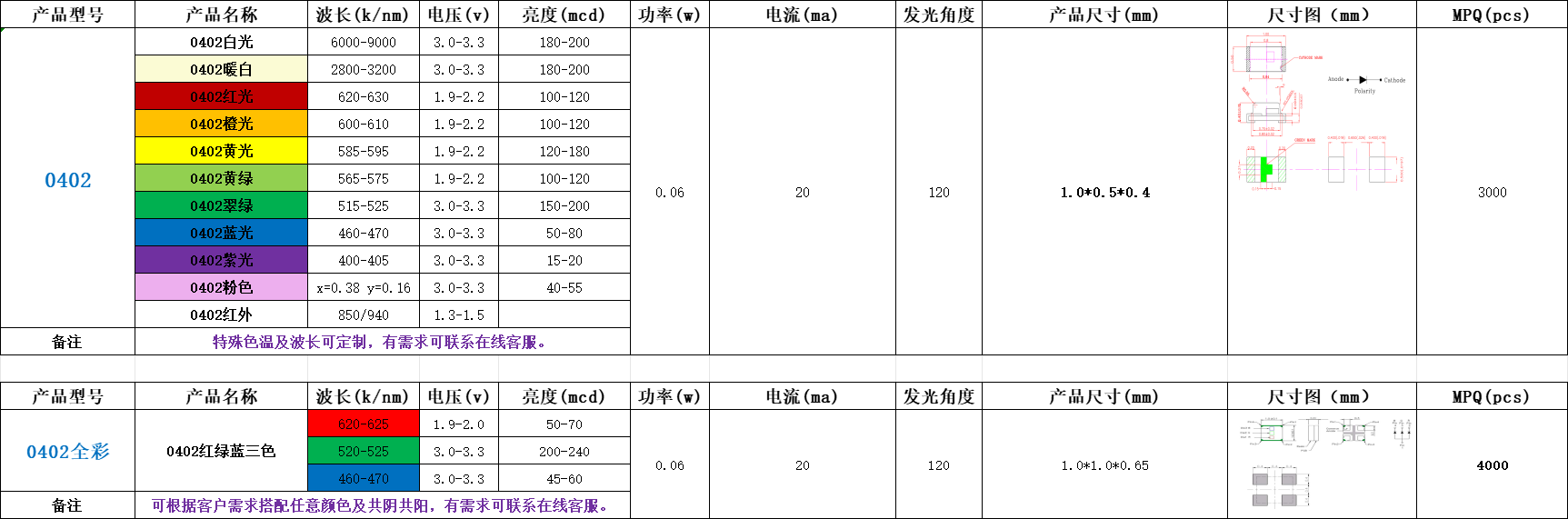 >>立即咨询 QQ: 2881795059 (微信同号) 电话:400-689-8189小贴士:需要0603、0402、1206贴片led灯珠价格,规格书、图片、参数,样品免费测试都可以咨询在线客服。