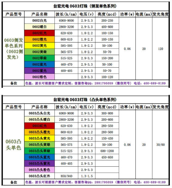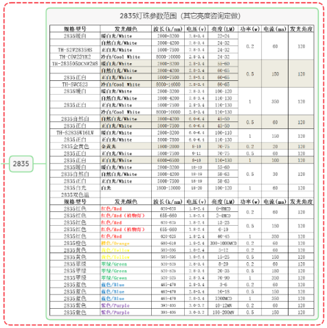 如果你需要更多的贴片led灯珠一览表,规格书,电流,电压,亮度参数,请咨询led灯珠厂家台宏光电!