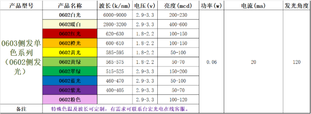 比如,LED灯珠厂家台宏光电的0603灯珠规格型号。