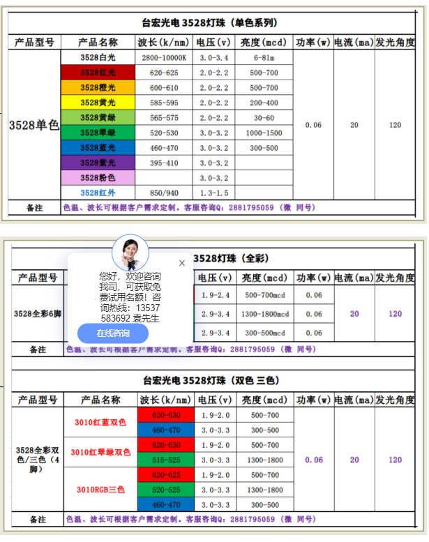具体的贴片LED灯珠参数、规格书可以咨询灯珠教授助理微信 2881795059 索取,需要灯珠样品也是可以申请的哦。