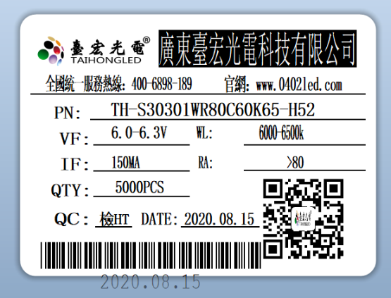 第一种方法,最简单,那就是看厂家的LED标签,一般情况下,每家LED灯珠供应商出货前,都会在LED灯珠静电袋的标签纸上标示出来电流,电压是多少,方便用户识别电压、电流等参数。