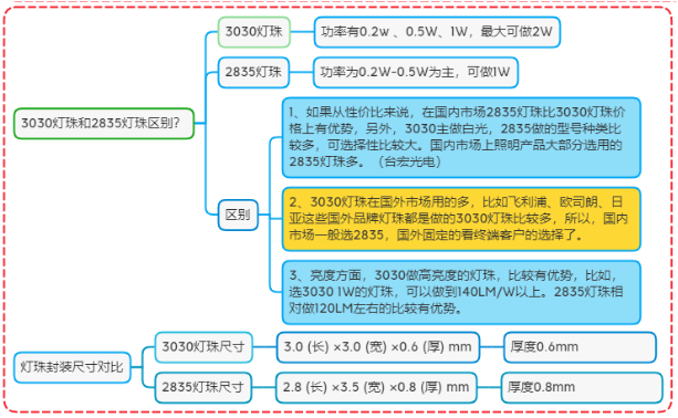 1W以上的灯珠呢,3030灯珠要优于2835灯珠。