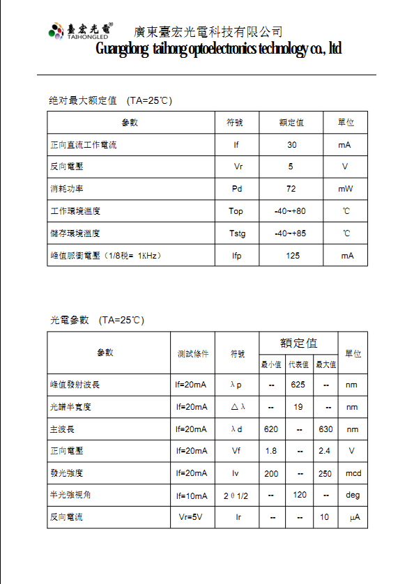 贴片发光二极管规格书