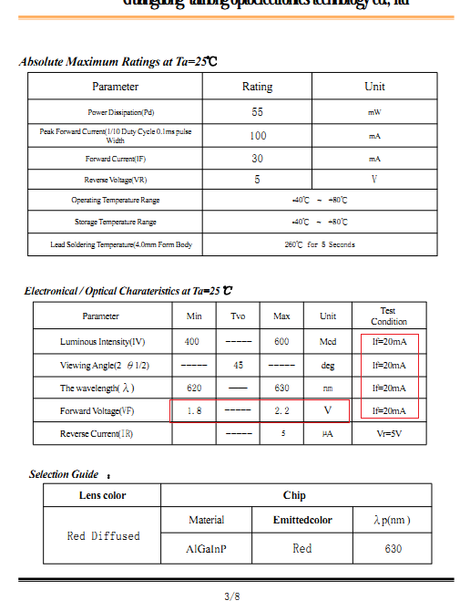3、3mm的led要多大电流才发光?点亮普通亮度时, 红、黄光系列LED较佳工作电流为10-15mA,此时发光强度可满足常规指示需求,工作电压一般在1.8V-2.2V之间。但是蓝、绿、白光系列led需要15-20mA的电流,工作电压在3.0V-3.4V之间。