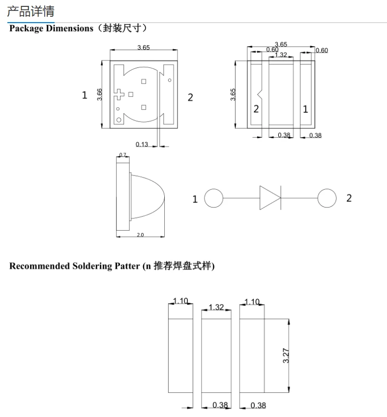 外形尺寸:3.45(长)*3.45(宽)*2.36(厚)MM
