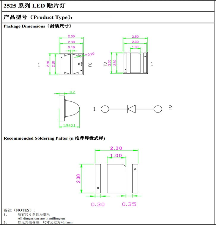 外形尺寸:2.45(长)*2.45(宽)*2.0(厚)MM