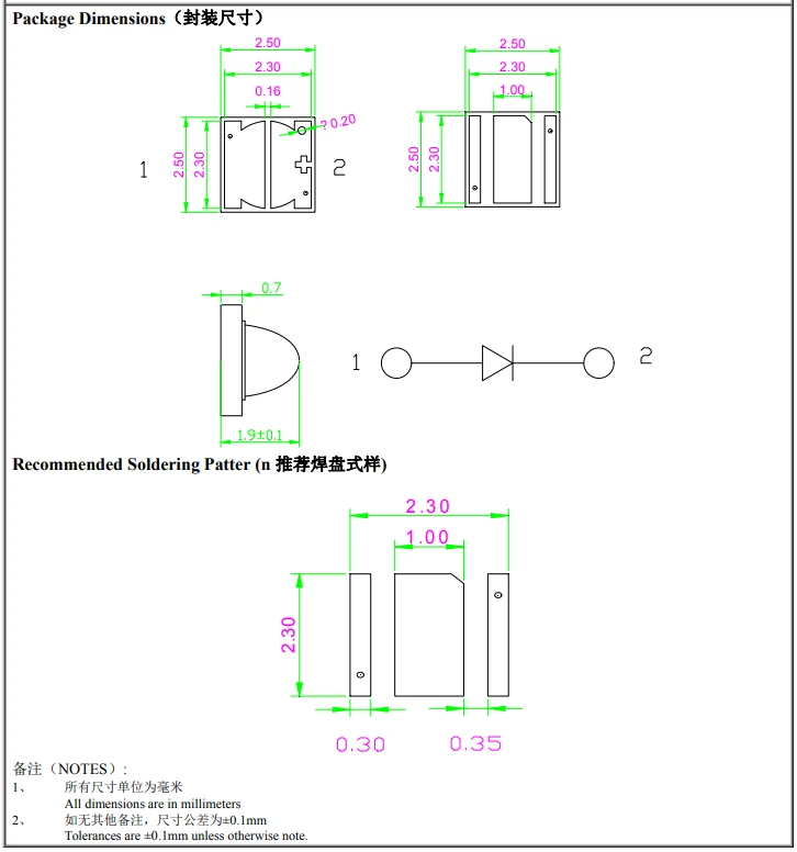 外形尺寸:2.45(长)*2.45(宽)*2.0(厚)MM