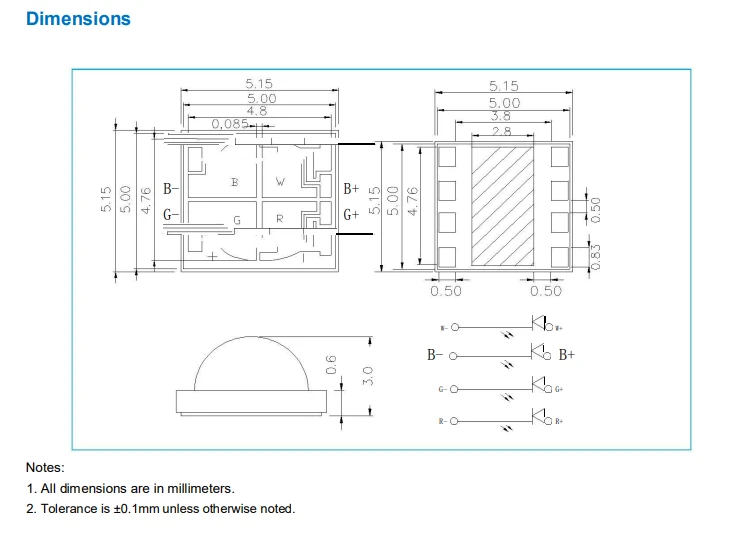 详细5050大功率灯珠,5050 RGBW 12W 大功率陶瓷贴片LED灯珠规格书,