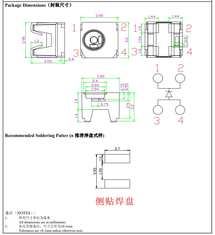外形尺寸:4.0(长)4.0(宽)3.55(厚)